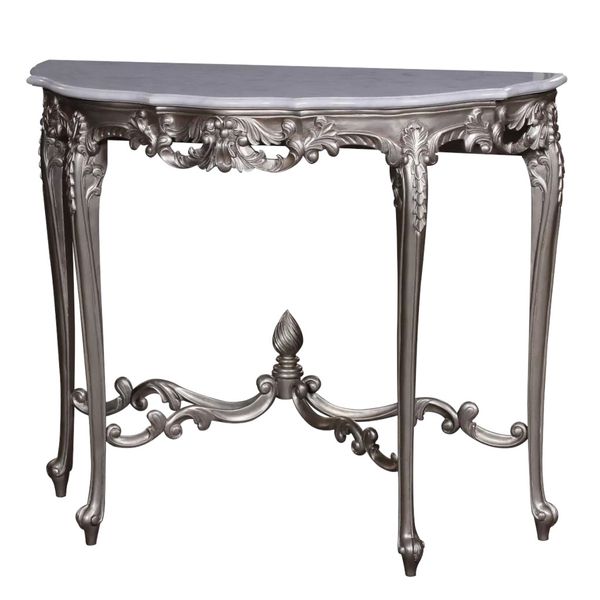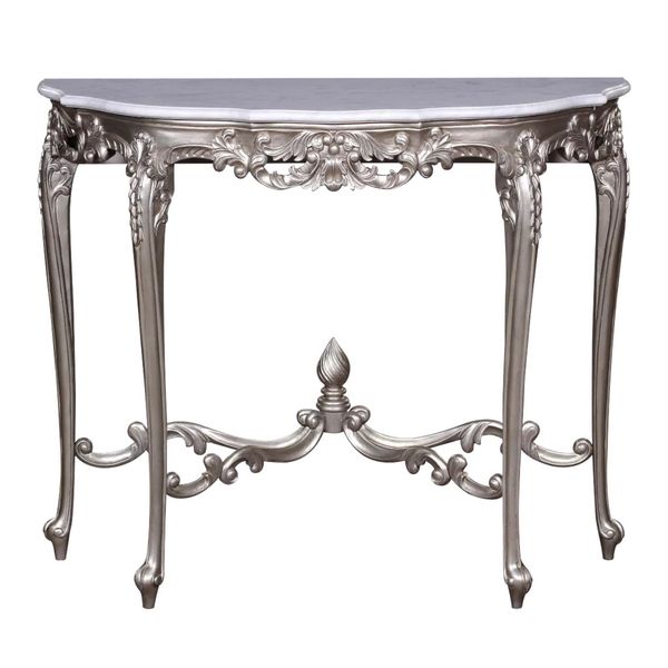 Konsolentisch, Wandtisch, Material: Marmorplatte, Größe: B 106 x T 39 x H 89 cm, Farbe: silber-weiß, Stil: Louis XV Konsole mit Marmorplatte