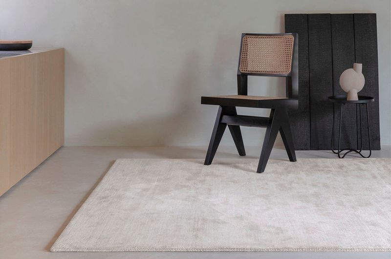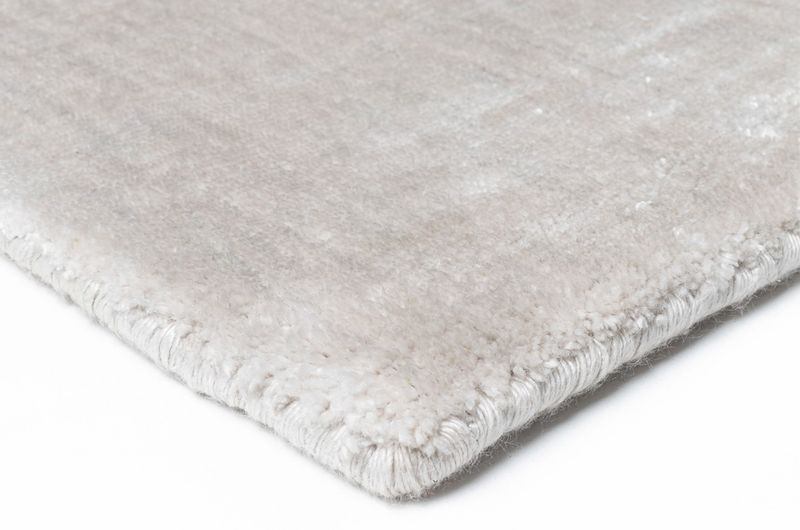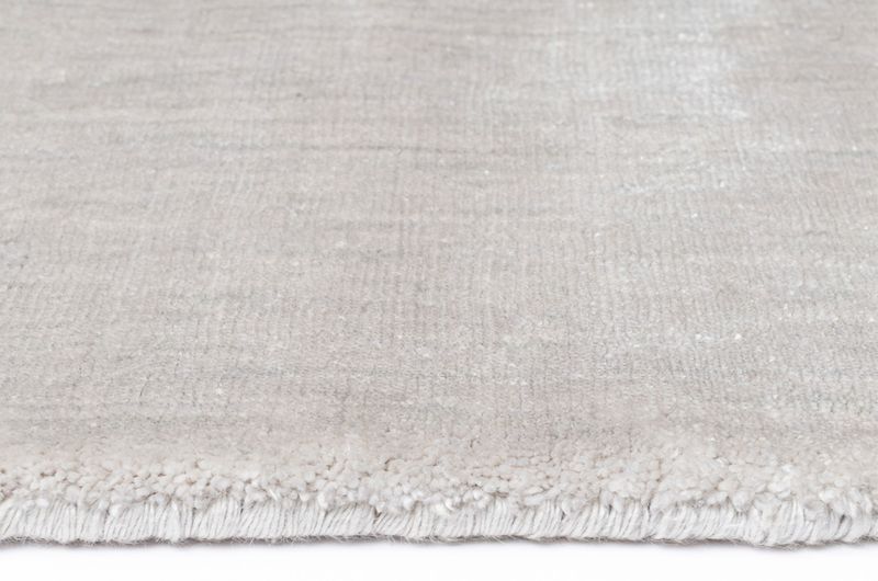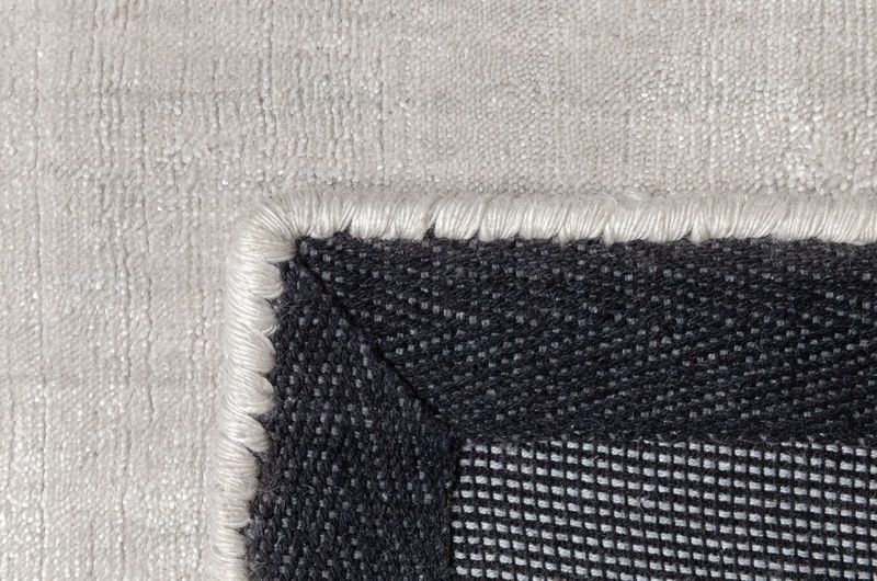 Verleihen Sie Ihren Räumen mit unserem rechteckigen Teppich in schimmerndem Silber-Grau einen Hauch von Luxus! Gefertigt aus 100% reiner Bambusseide, begeistert dieser exklusive Teppich durch seine seidig-glatte Oberfläche und den sanften Glanz, der an feine Viskose erinnert.