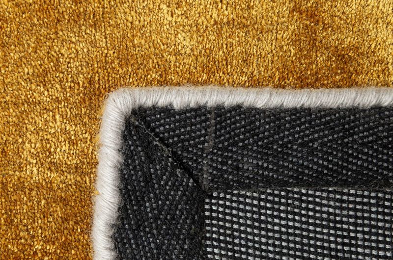 Verleihen Sie Ihren Räumen mit unserem rechteckigen Teppich in schimmerndem Gold einen Hauch von Luxus! Gefertigt aus 100% reiner Bambusseide, begeistert dieser exklusive Teppich durch seine seidig-glatte Oberfläche und den sanften Glanz, der an feine Viskose erinnert.